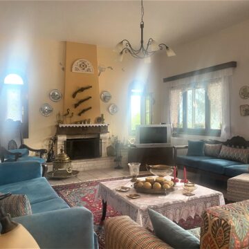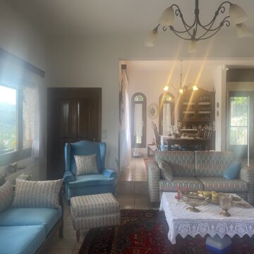 Βίλα 400 τ.μ., 3 επιπέδων, σε οικόπεδο 15.000 τ.μ., με απεριόριστη θέα, κατασκευασμένη με άριστα υλικά. Συγκεκριμένα στο ισόγειο βρίσκεται ενιαίος χώρος σαλονιού-τραπεζαρίας-κουζίνας και wc. Στον 1ο όροφο βρίσκεται 1 άνετο δωμάτιο, ο 2ος όροφος αποτελείται από 3 δωμάτια [το 1 master] και μπάνιο και στην σοφίτα υπάρχει χώρος με σάουνα. Διαθέτει θέρμανση πετρελαίου, 2 τζάκια, ηλεκτρικές συσκευές, όλα τα έπιπλα, ηλιακό θερμοσίφωνα, σάουνα, γεώτρηση, αποθήκη, λεβητοστάσιο, κιόσκι με BBQ, πόρτα ασφαλείας, συναγερμό, κήπο με οπωροφόρα δένδρα και ιδιωτικό δρόμο. Διαθέτει κατοικία για το προσωπικό, αποτελούμενο από 1 δωμάτιο, ενιαίο χώρο καθιστικού-κουζίνας και μπάνιο και 3 εξωτερικές αποθήκες.