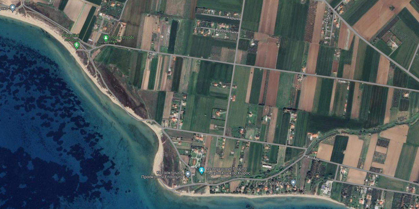 Αγροτεμάχιο 1024 τ.μ., σε οικισμό 10 ακινήτων, 450 μέτρα από θάλασσα, είσοδος από την οδό Αργοναυτών με πλάτος δρόμου 5μ., πολύ κοντά στον κεντρικό ο οποίος οδηγεί στον δρόμο Επανομής - Ν. Ηράκλειας και στην παραλία . Η πρόσοψη του στον αγροτικό δρόμο είναι 24,50μ.. Διαθέτει γεώτρηση 70 μέτρων με υποβρύχια αντλία, εγκατάσταση για πόσιμο νερό, τριφασικό ρεύμα, βόθρο 10 κυβικών και τουαλέτα. Δεν έχει γίνει σύσταση ορίζοντας ιδιοκτησίας.